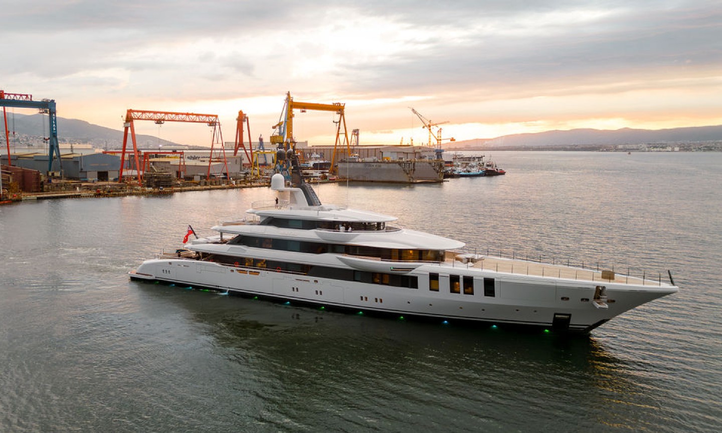 The yacht features an unusually large full-beam beach club, which opens aft to the swimming platform and has a shell door on either side engineered to become extended platforms when open. There is a midship tender garage with a massive shell door that gives access to a full length of 10.2m limousine tender.