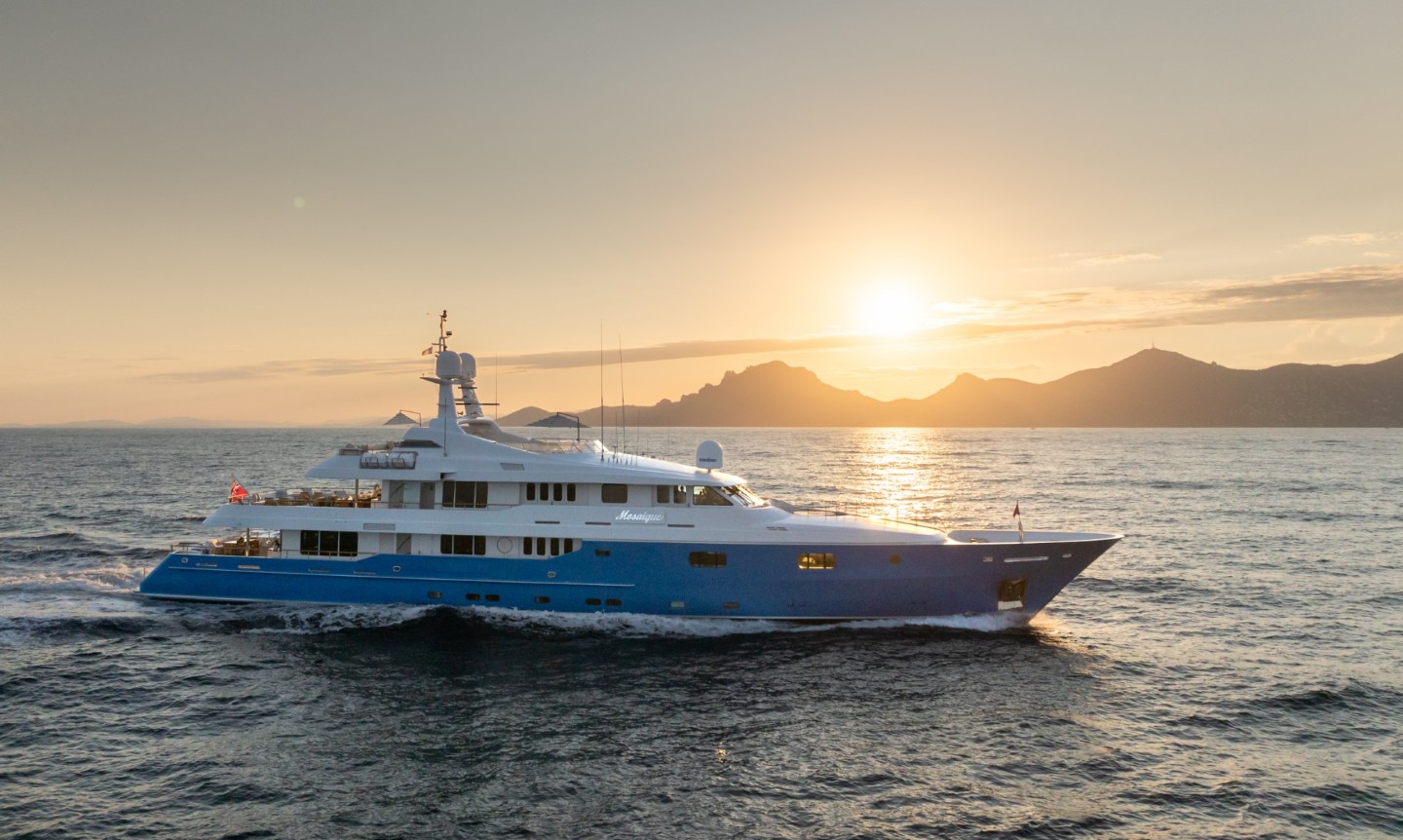 MOSAIQUE is a custom full displacement yacht built by Proteksan Turquoise, now Turquoise Yachts, on their very successful 50m/164’ series platform. The British ‘dream team’ Ed Dubois and Donal Starkey respectively designed her sleek exterior lines and spacious interior. Her naval architecture was by Dubois.At 589 GT, MOSAIQUE is extremely spacious for a 50m yacht. Her current casual-elegant “Hamptons Beach” style with large windows is well designed and inviting. MOSAIQUE accommodates 12 guests in six staterooms with the full-beam master suite on the main deck.